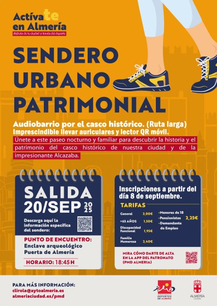 El patronato municipal de deportes junto al área de ciudad activa del Excmo. ayuntamiento de Almería propone otro paseo nocturno sonoro para conocer el casco histórico el próximo 20 de septiembre